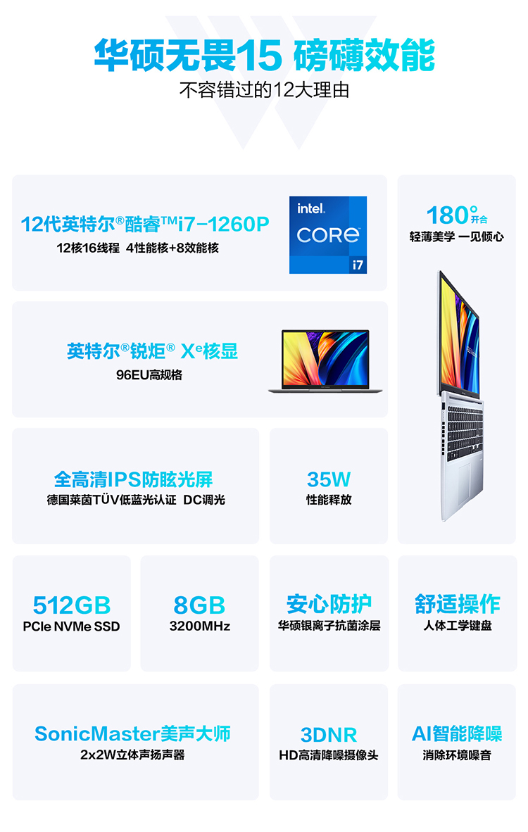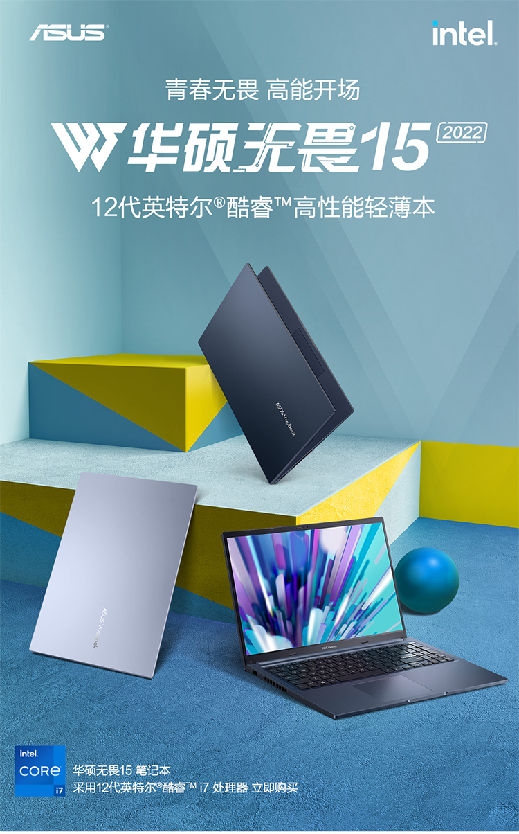 华硕(ASUS)无畏15 12代英特尔酷睿i7 15.6英寸轻薄大屏办公学生笔记本电脑
