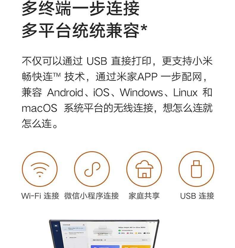 小米(MI) 小米米家连供喷墨打印一体机 打印机 大容量连供彩色无线多功能手机复印 扫描 Wifi 微信远程打印 连供喷墨打印一体机