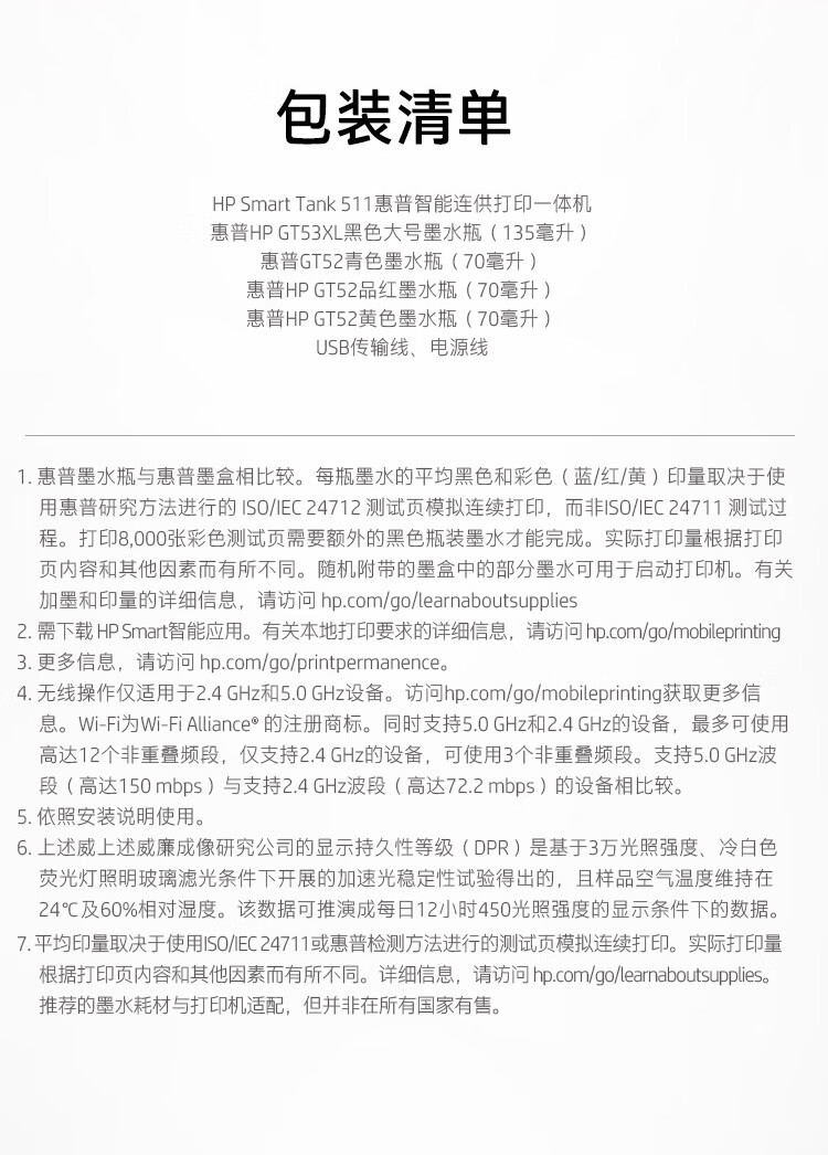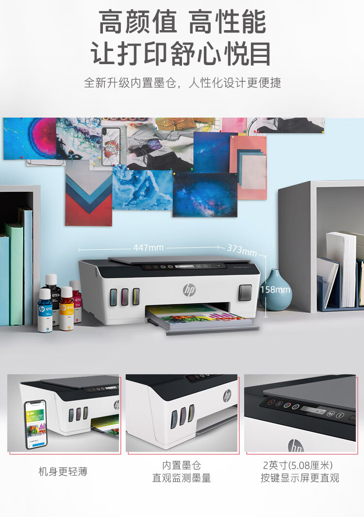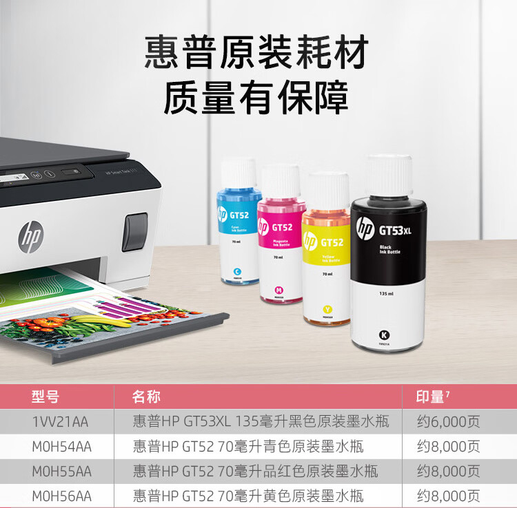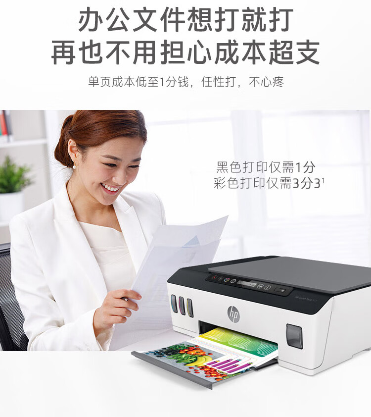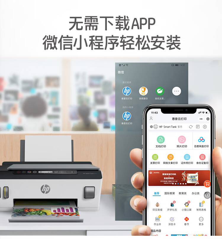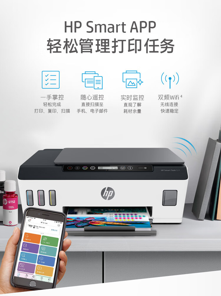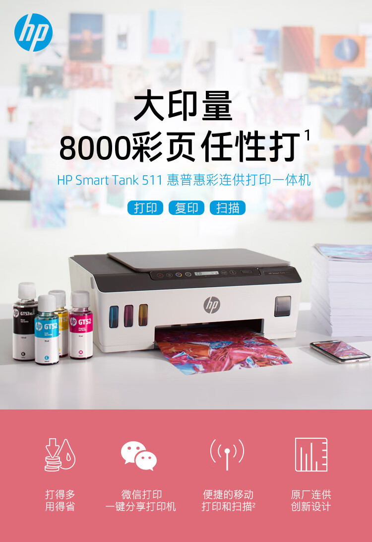 HP 惠普 Tank511 A4彩色喷墨墨仓式连供一体机复印扫描手机无线连接家用商用办公文本打印机 台式主机笔记本电脑打印机