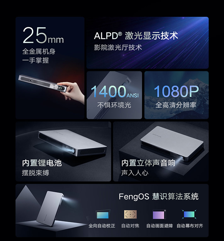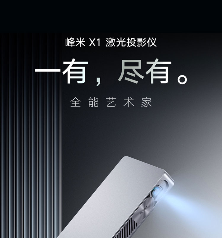 峰米X1激光投影仪家用投墙小型便携式高清1080P内置电池卧室宿舍投墙壁智能家庭影院办公用会议投影机 峰米X1
