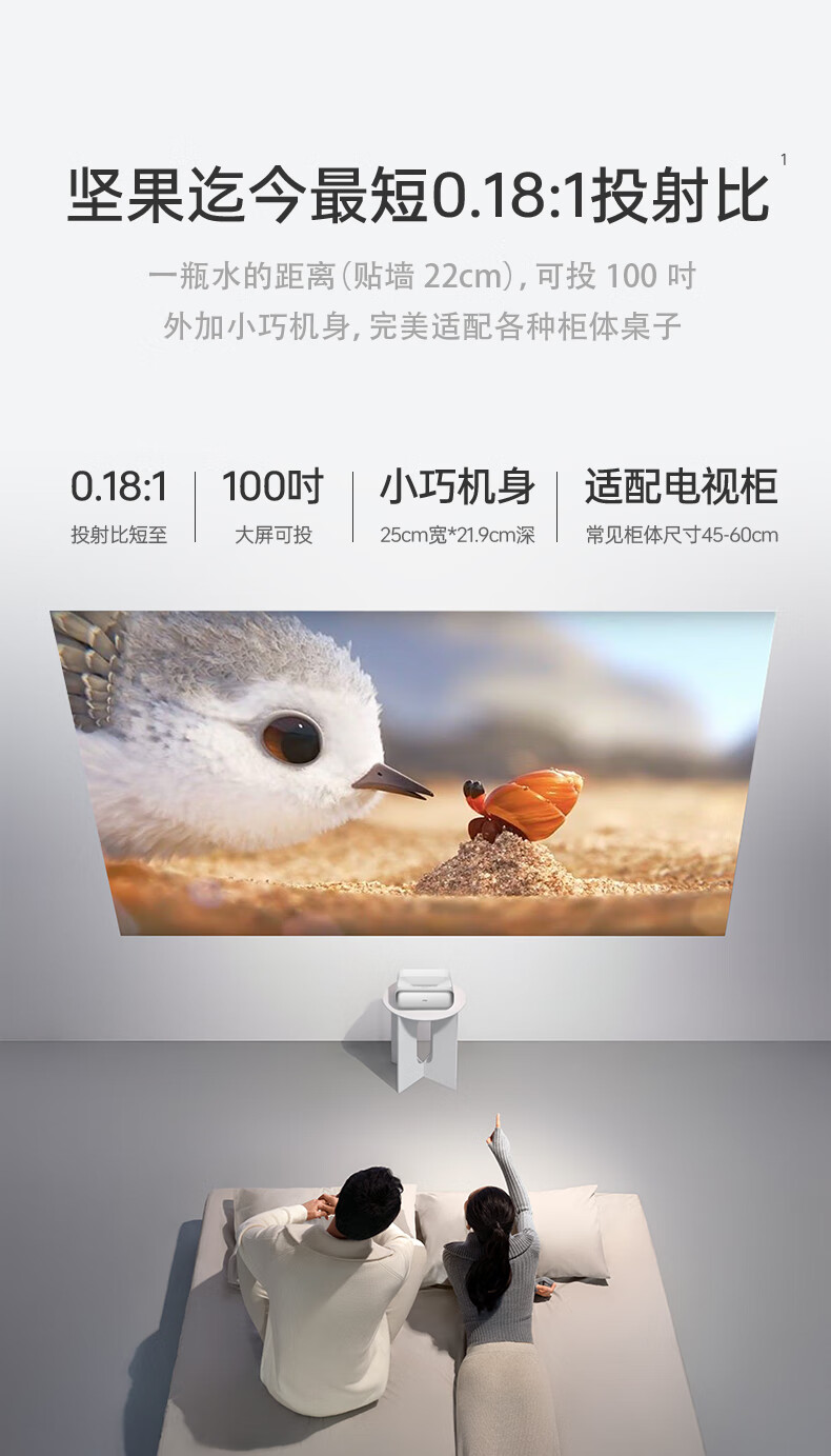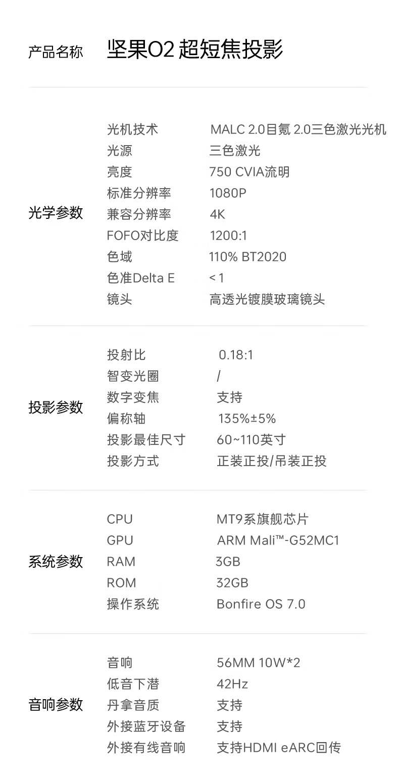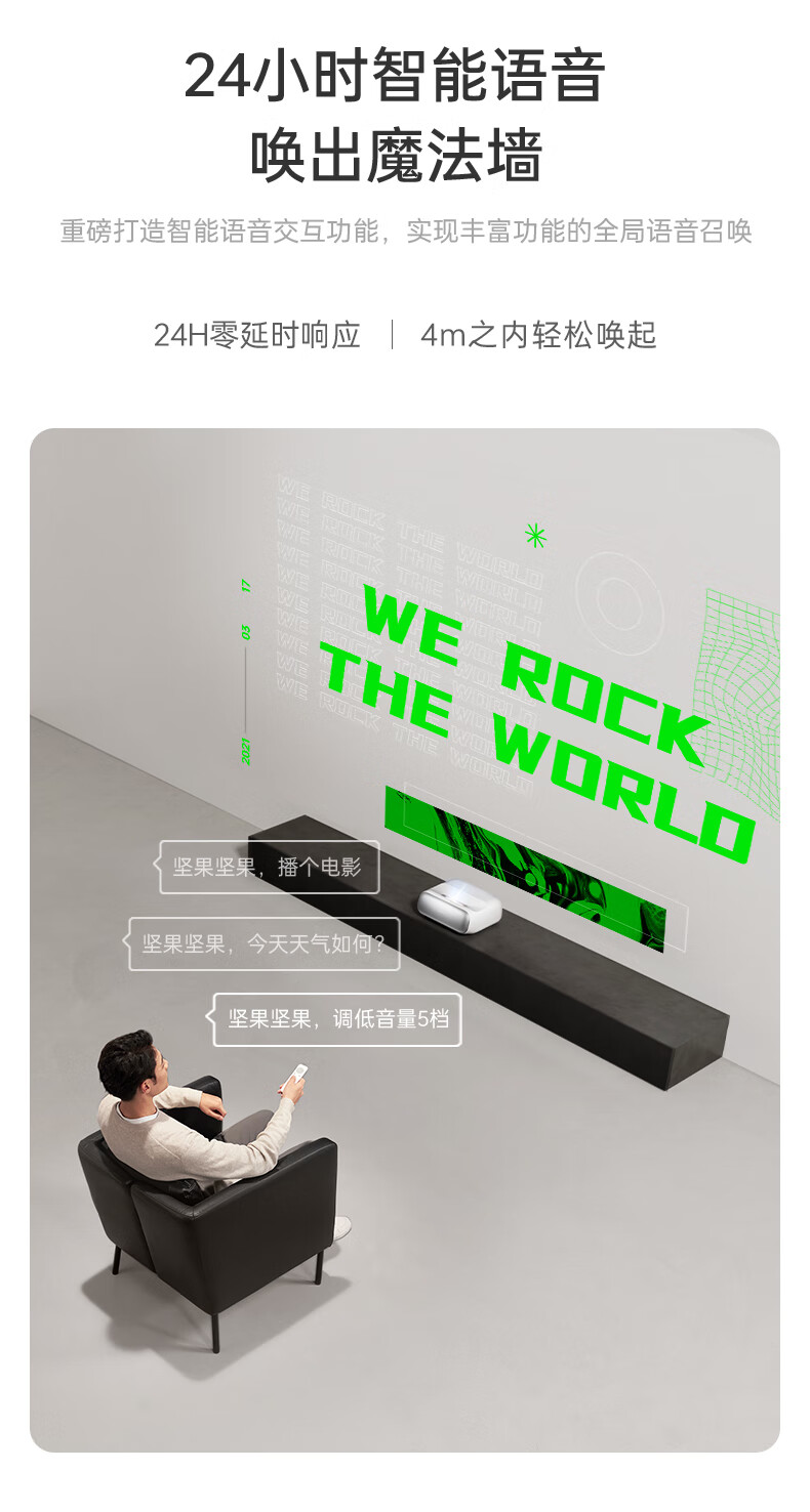 坚果(JMGO)坚果投影O2纯三色激光超短焦投影仪家庭影院白天投墙(离墙22cm投百吋 激光电视平替)坚果投影仪O2 单机