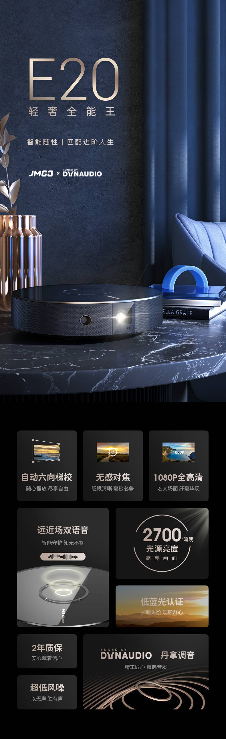 坚果(JMGO) E20投影仪家用办公AI语音1080P全高清便携式智能家庭影院投影机